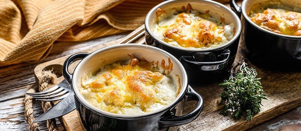 Жаркое из свинины, сыром, грибами и картофелем